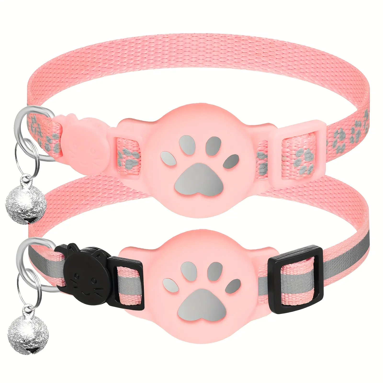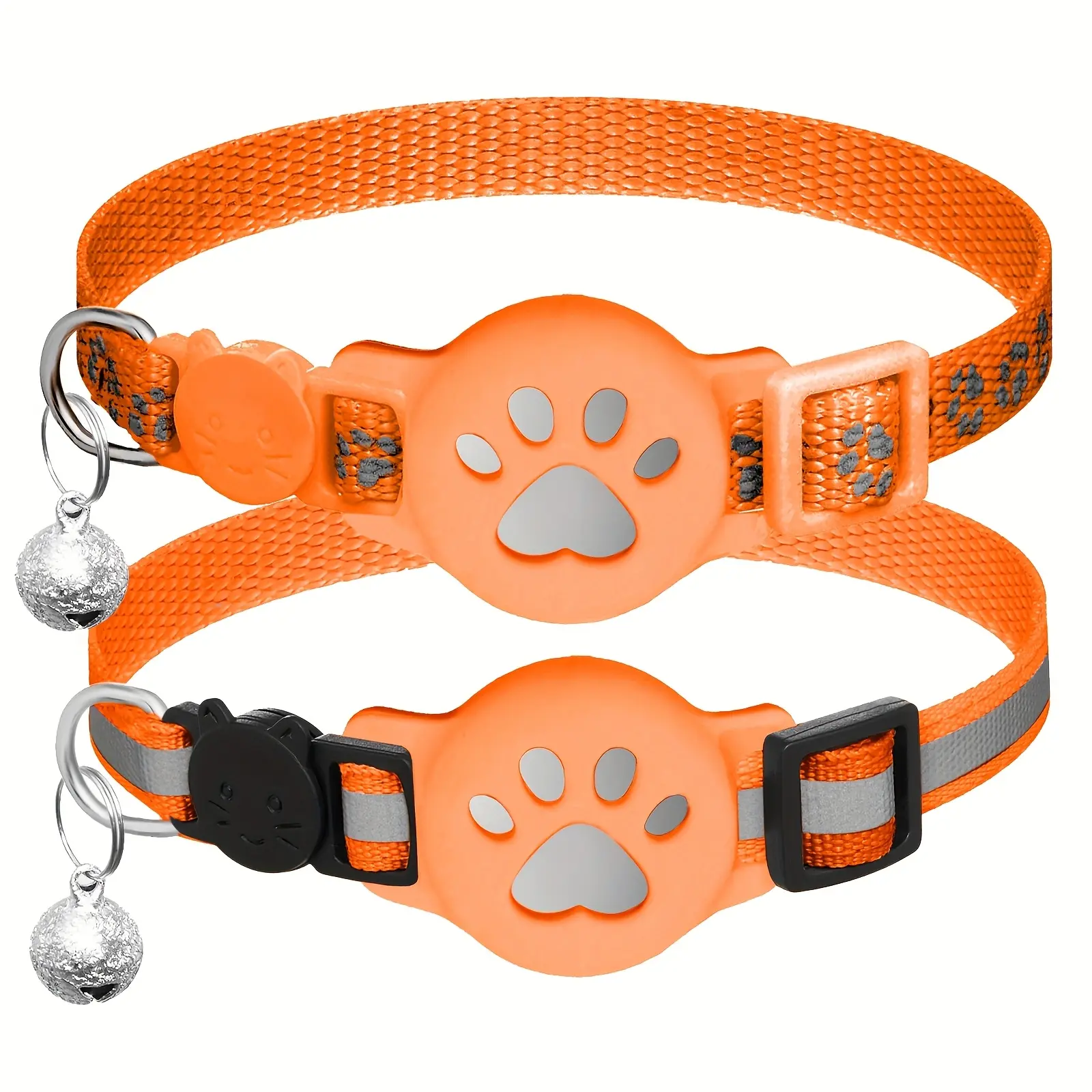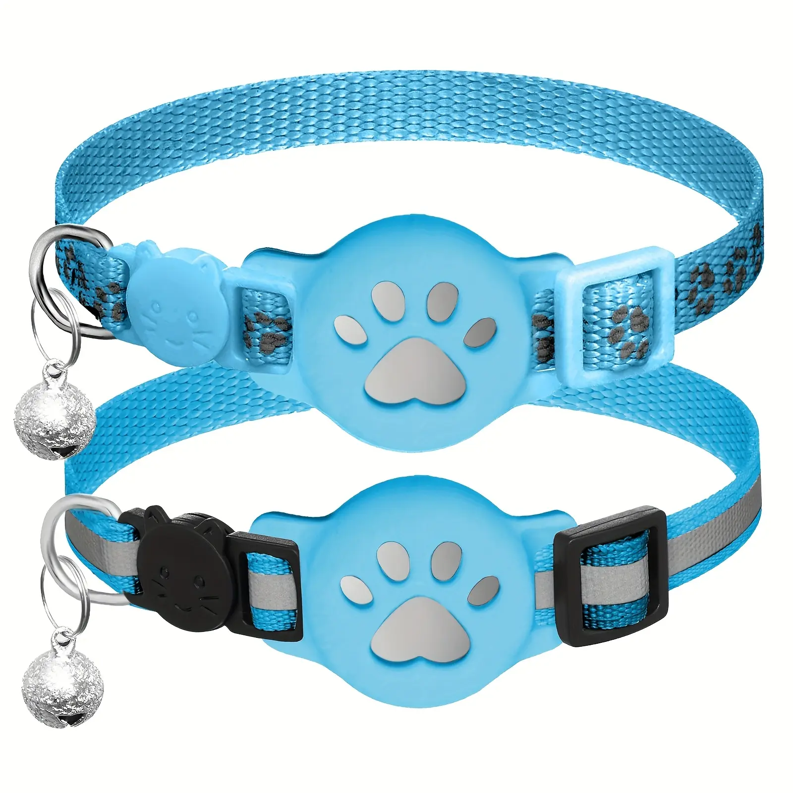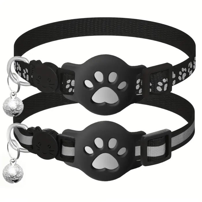 2pcs Reflective Cat Collar for Wearing Identification Accessories with GPS Holder and Bell