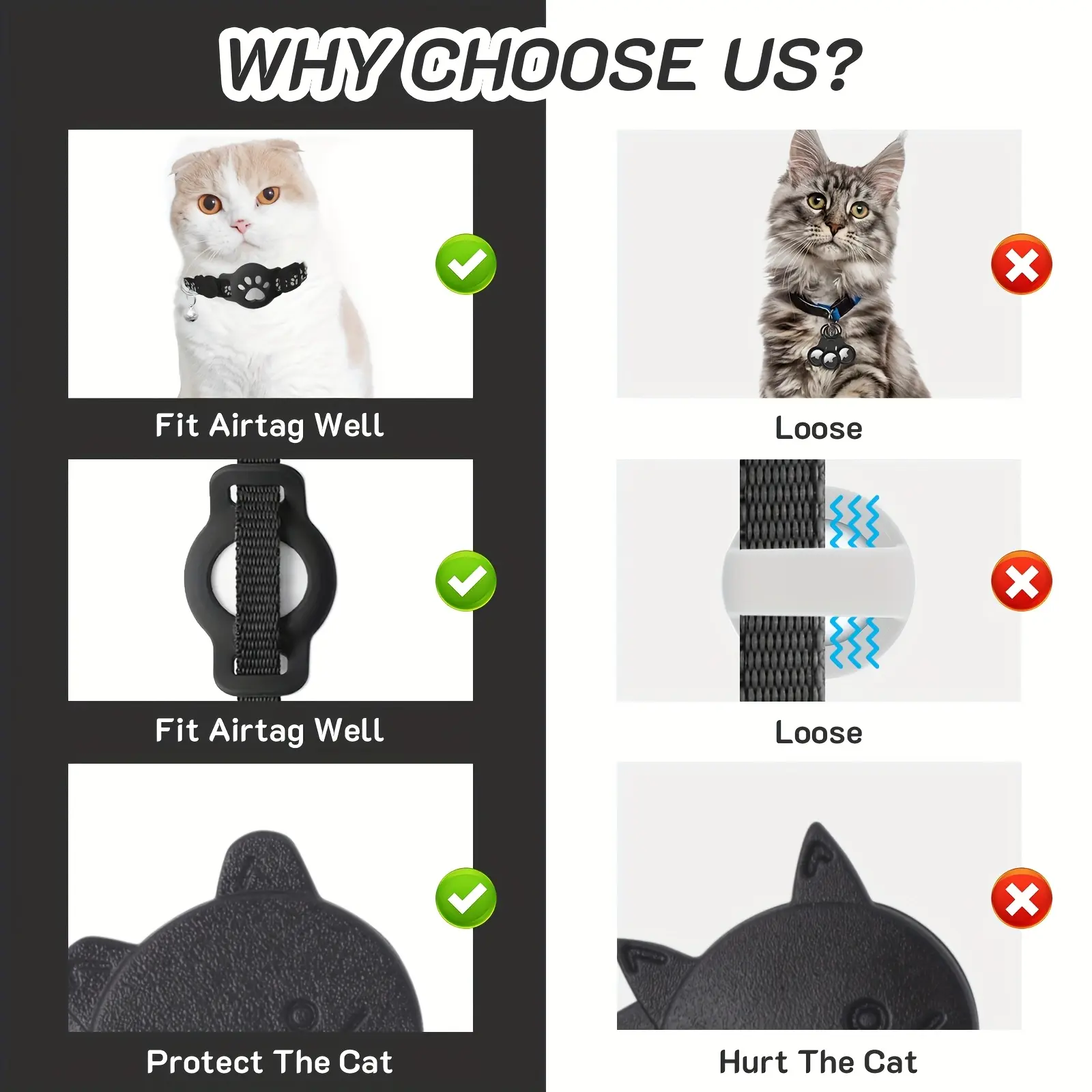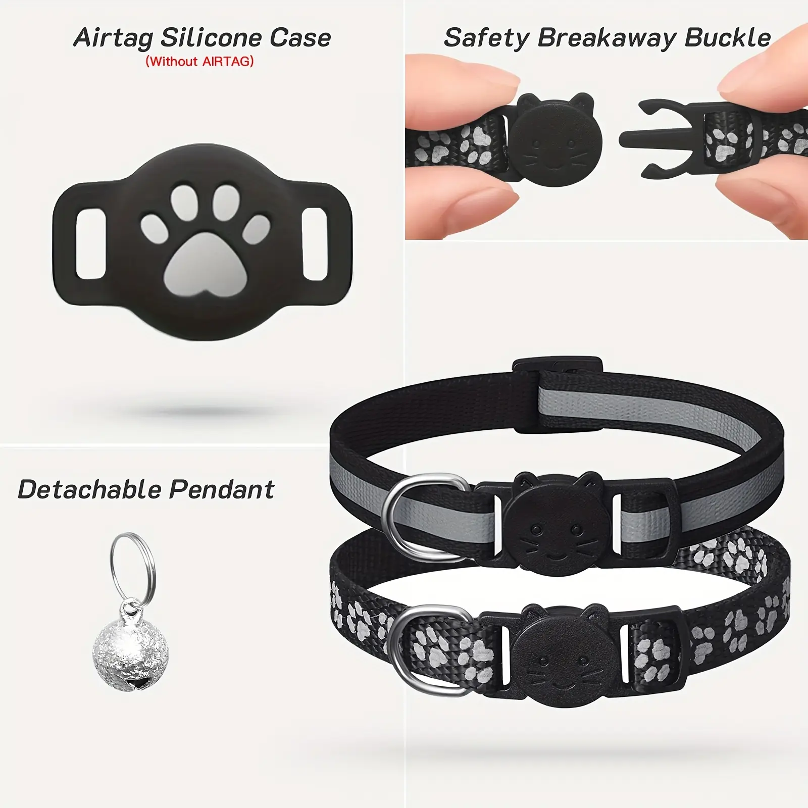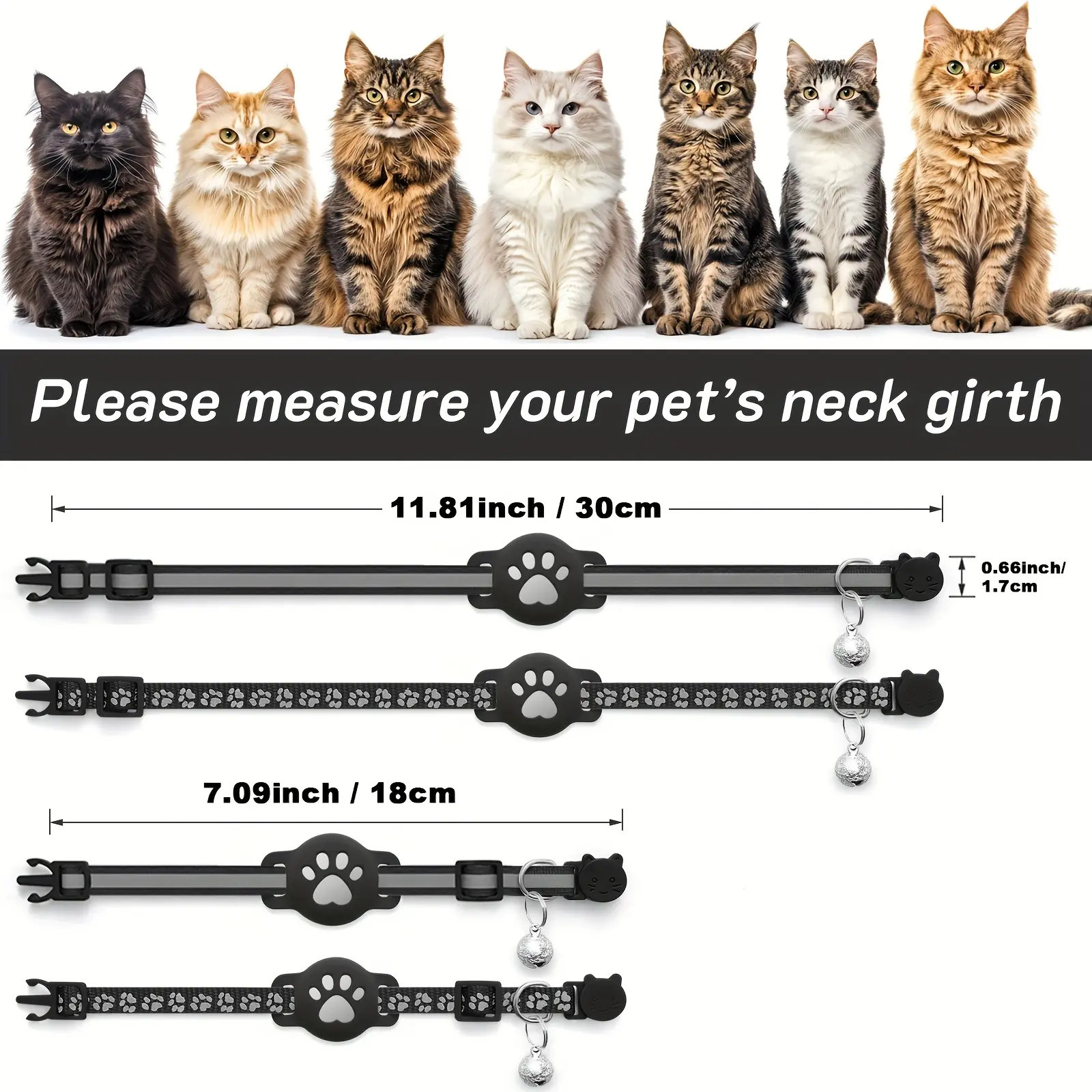 This cat collar is designed to help keep identification accessories attached during everyday wear. The reflective detailing is intended to improve visibility in low-light conditions. It includes a holder designed to keep a compatible GPS tracker in place. The polyamide material is selected for a lightweight, flexible feel. A small bell is included to provide an audible cue during movement.