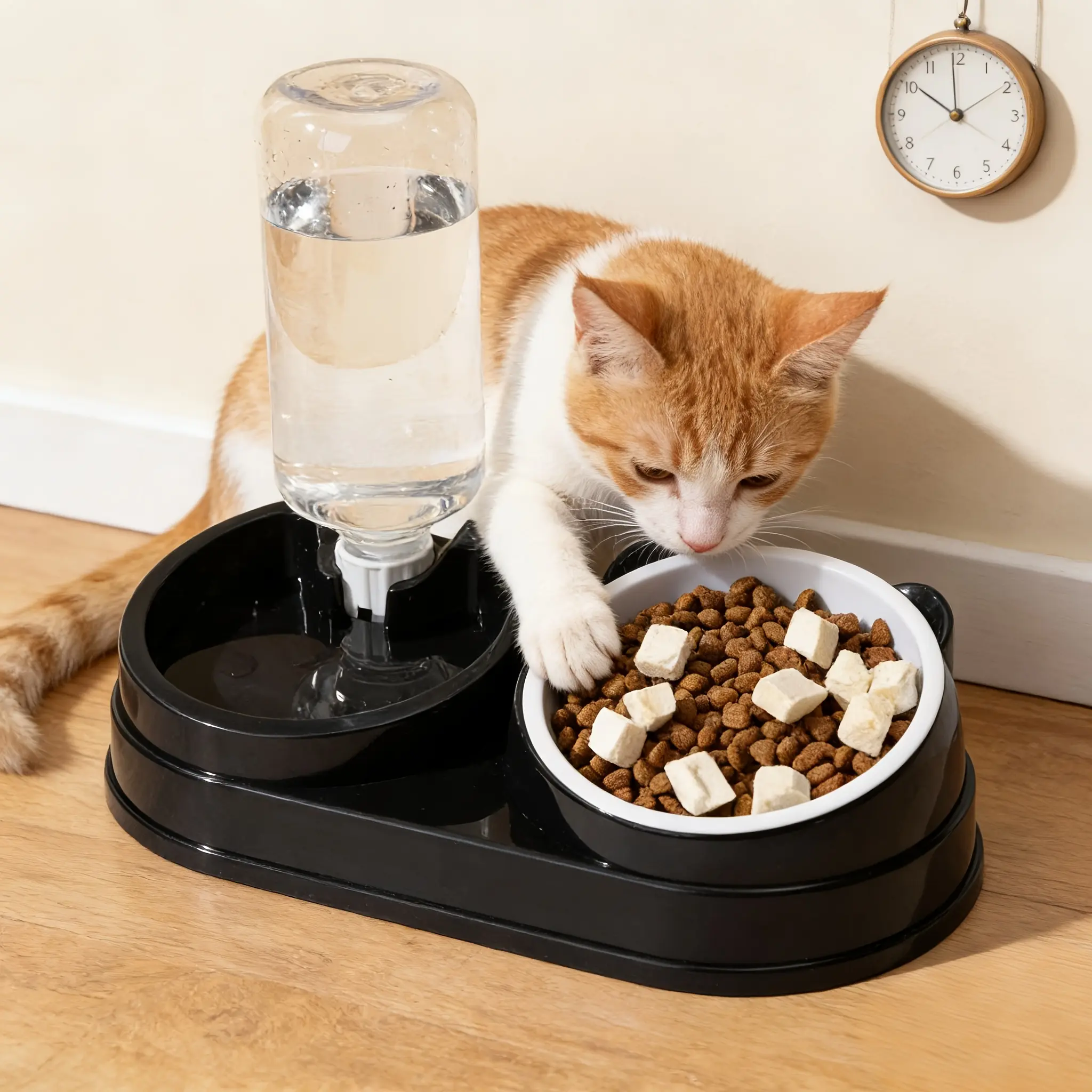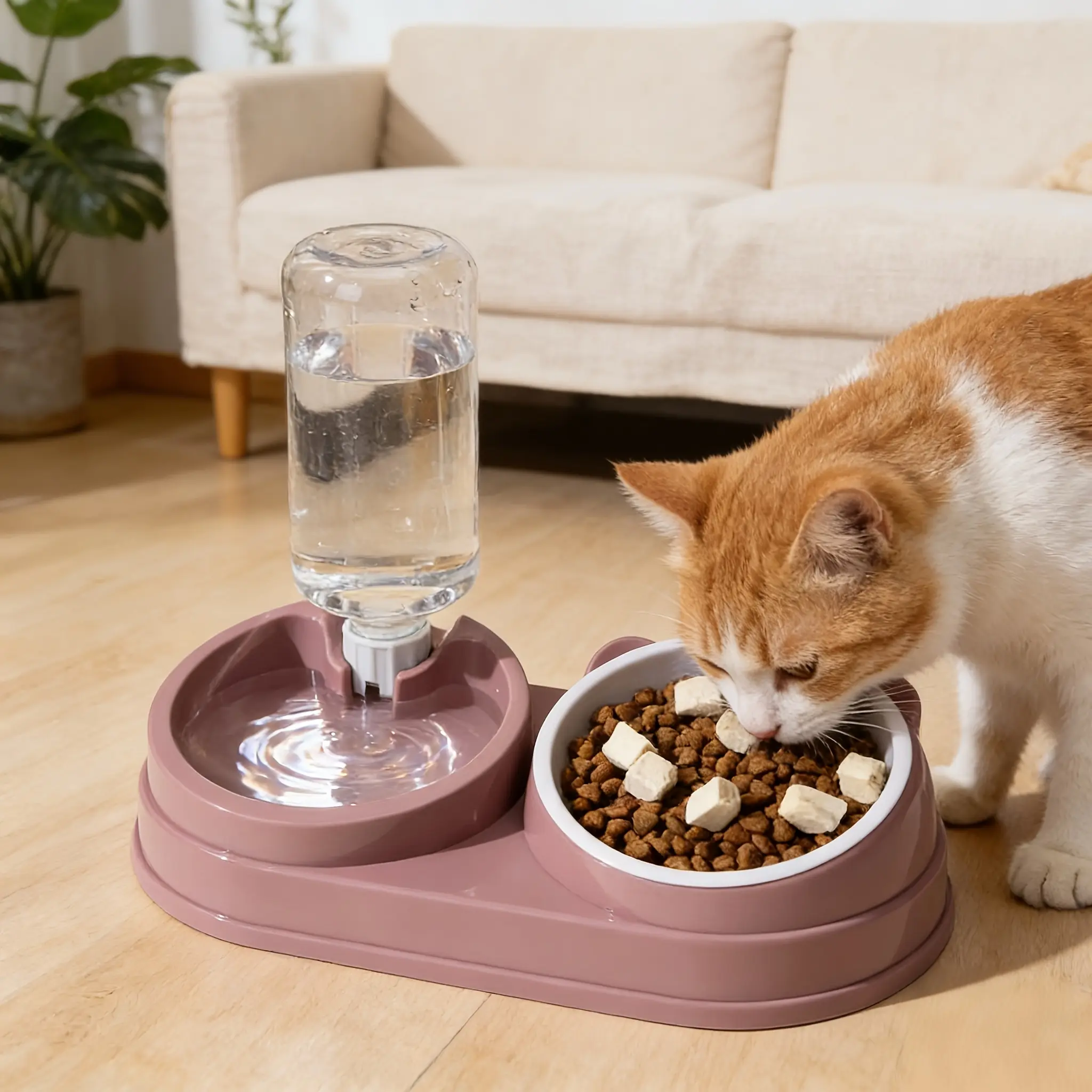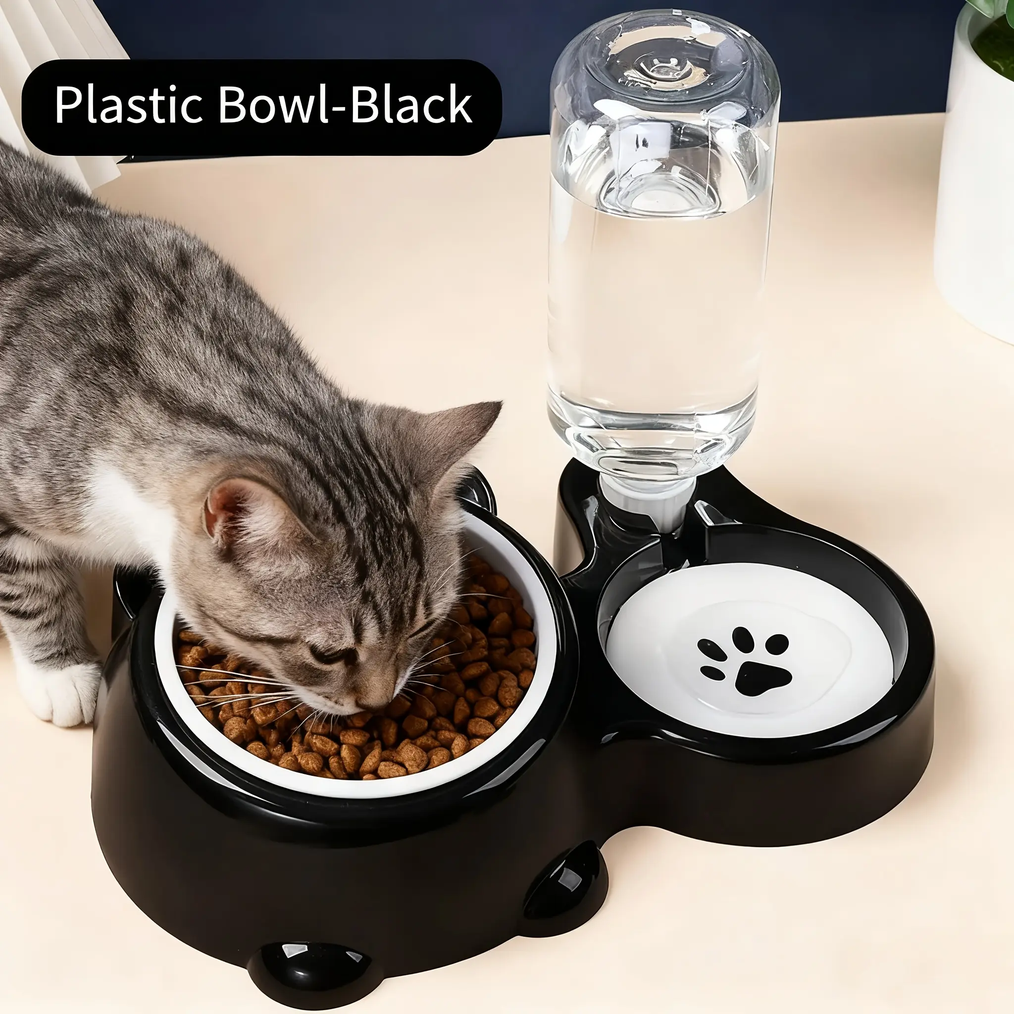 3-in-1 Pet Feeder and Automatic Water Dispenser for Cat and Dog Feeding with Non-Slip Tilted Bowl
