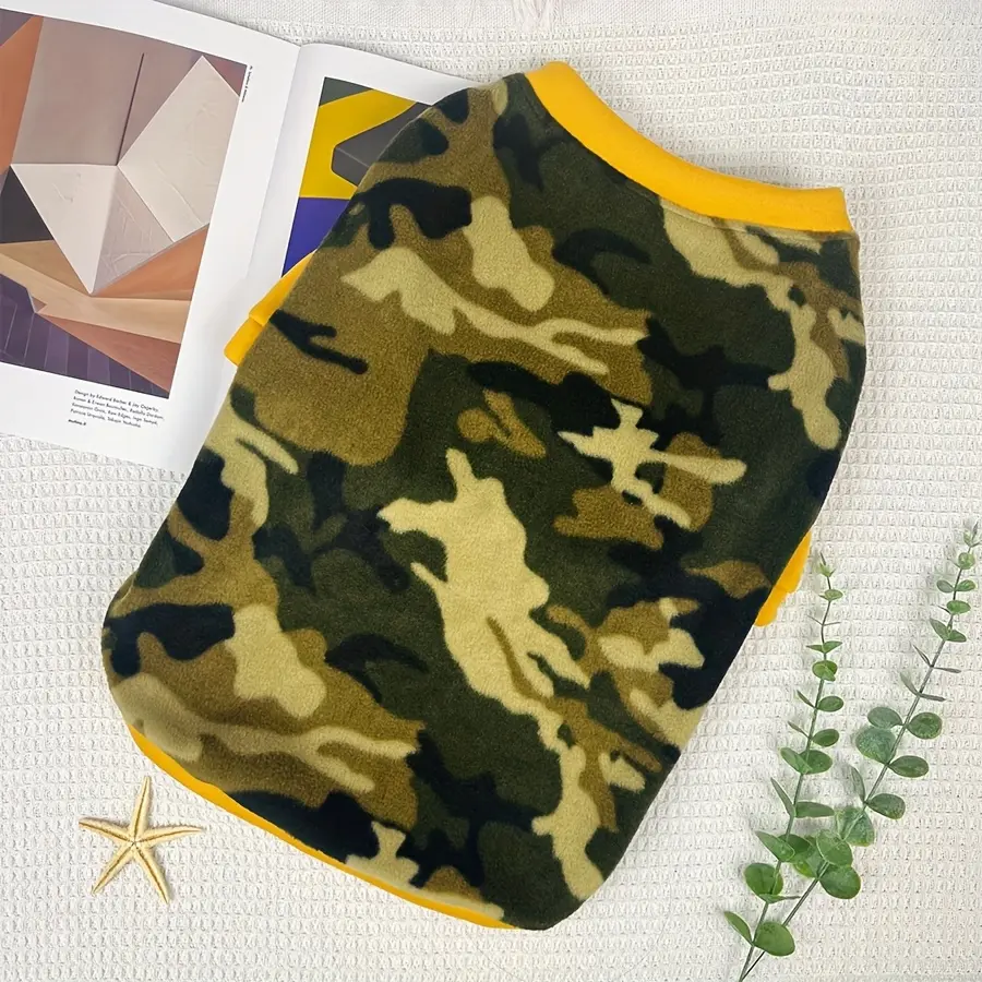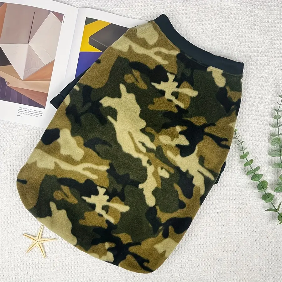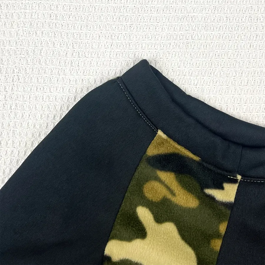 Camouflage Fleece Dog Crewneck Sweatshirt for Warmth and Coverage, Color-Block Design