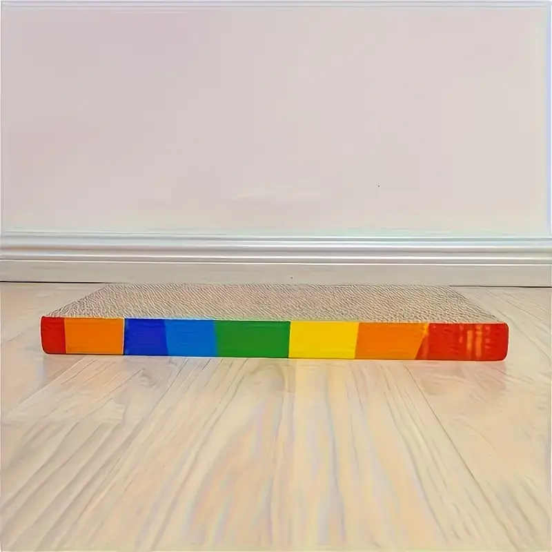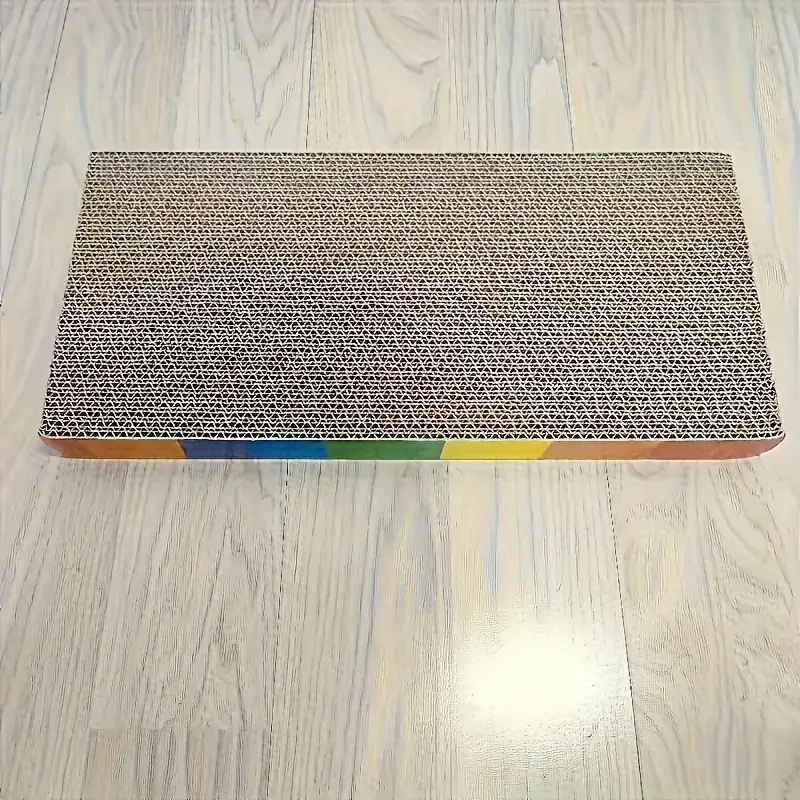 This corrugated cardboard scratching board is designed to provide a dedicated surface for scratching and a flat area for resting. The structured frame helps keep the board in place during use. A multi-surface layout offers varied texture across the scratching area. The lightweight form is intended for easy handling and repositioning indoors.