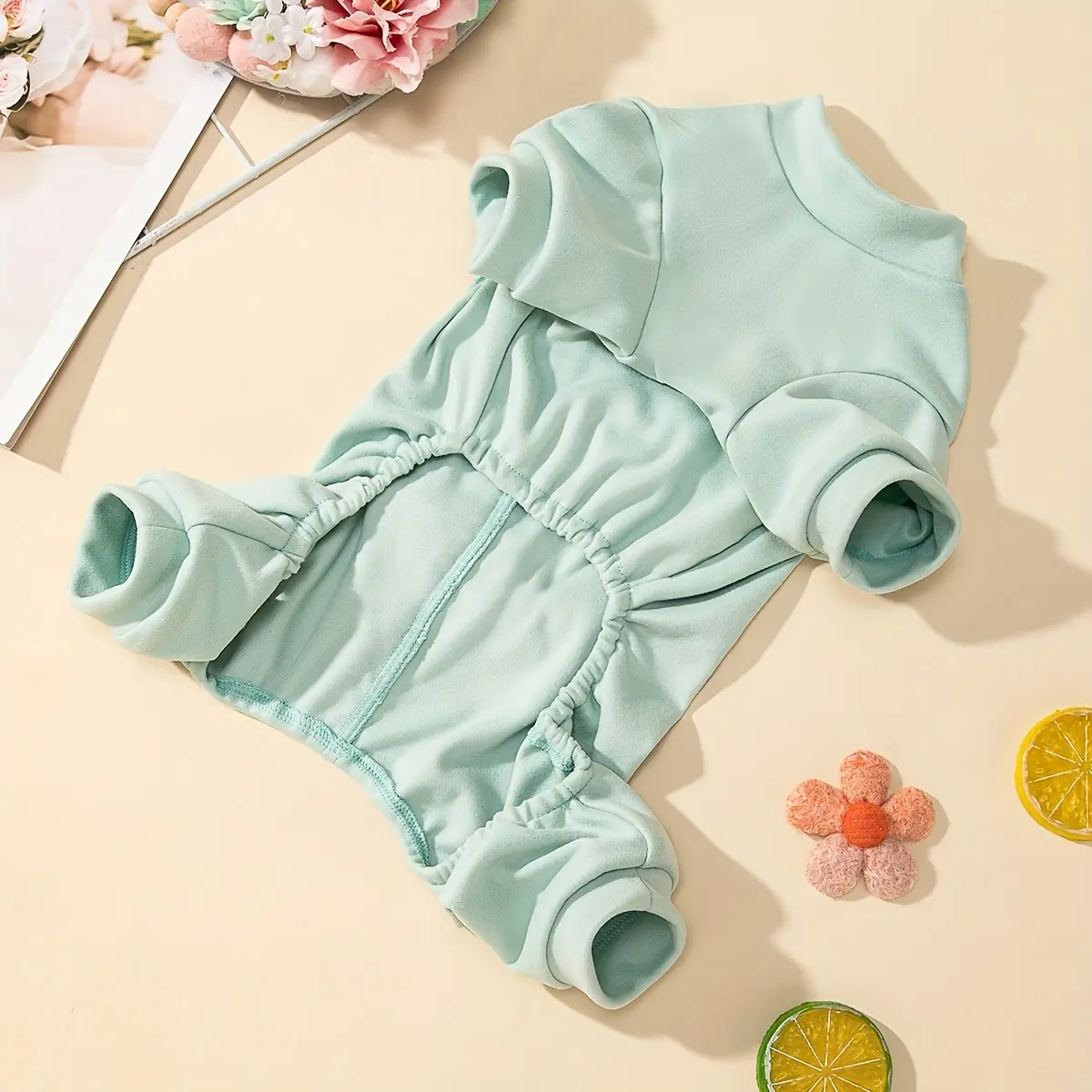 This dog jumpsuit is designed for daily wear and outdoor use in cooler conditions. The one-piece design helps provide consistent coverage while keeping movement straightforward. A velvet-style outer fabric and soft interior feel are intended to support comfortable wear. The bow detail adds a simple decorative finish without changing the overall fit.