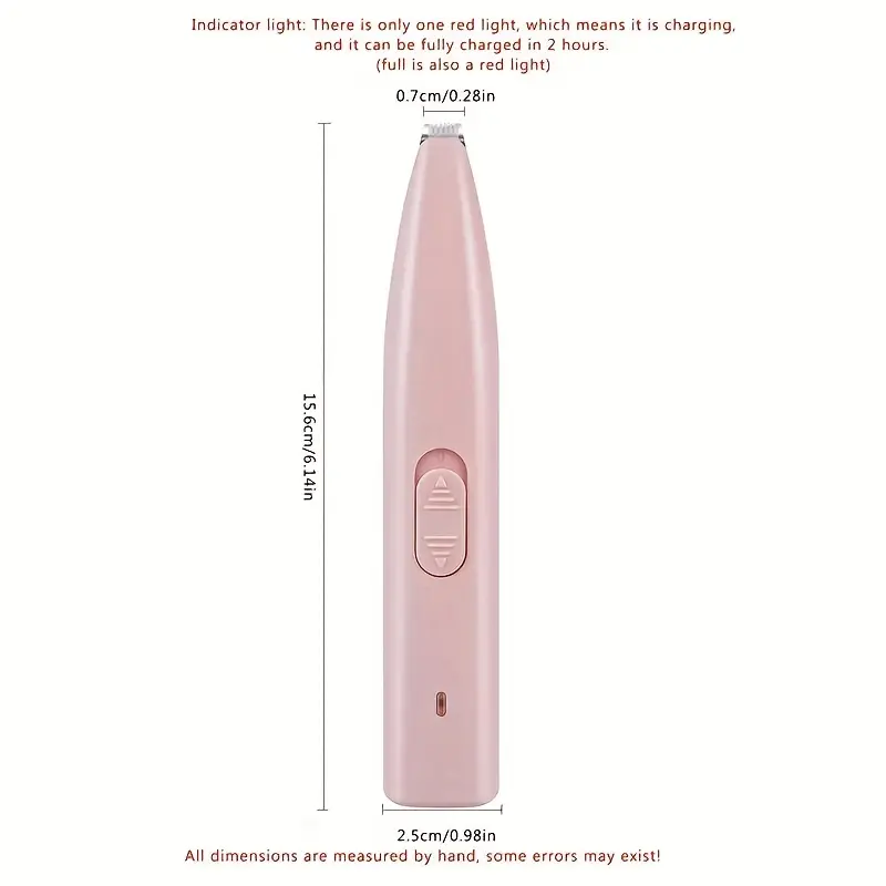 This electric pet hair clipper is designed for trimming dog and cat fur with controlled handling. The compact trimmer form helps reach smaller areas while maintaining a steady grip. An enclosed cutting head helps guide hair into the trimming area during use. Use on clean, dry fur and follow routine cleaning after each session.