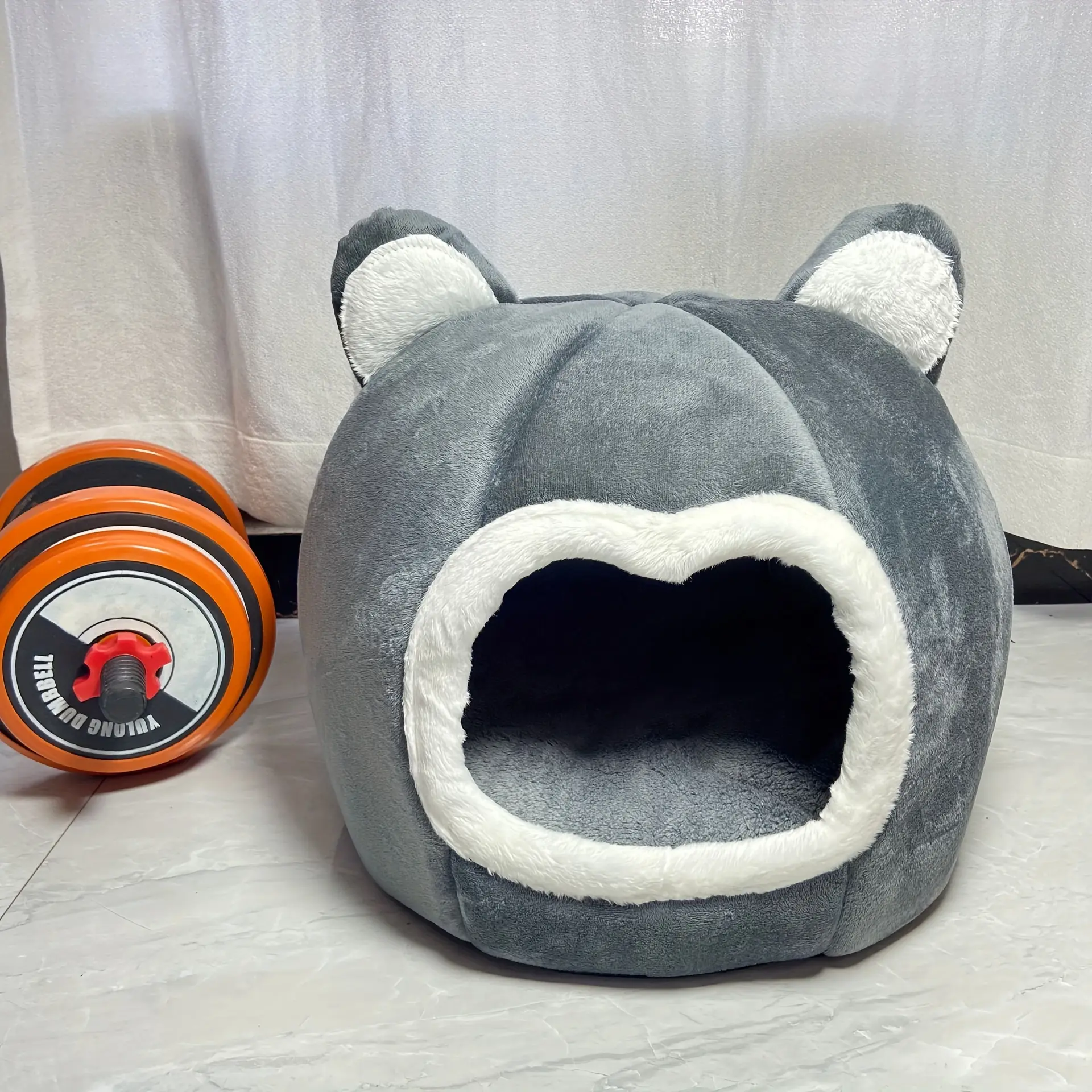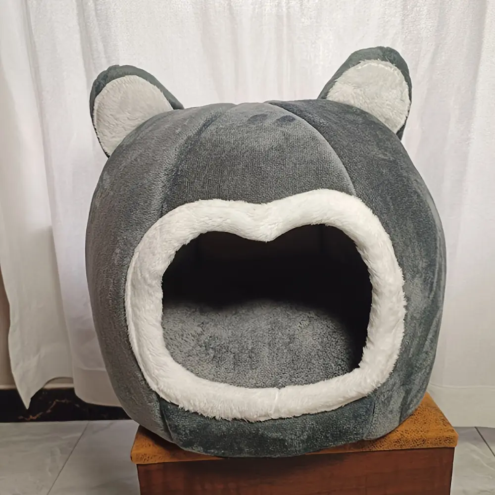This enclosed cat bed is designed to provide a covered resting space for cats. The insulated structure and fleece lining help reduce drafts around the resting area. An enclosed form factor supports a more sheltered sleep environment. Use it as a dedicated resting spot on indoor floor surfaces.
