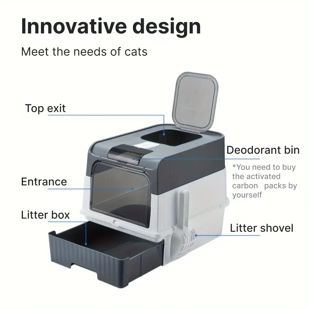 Enclosed Cat Litter Box for Leak Prevention & Odor Containment with Double Door Design