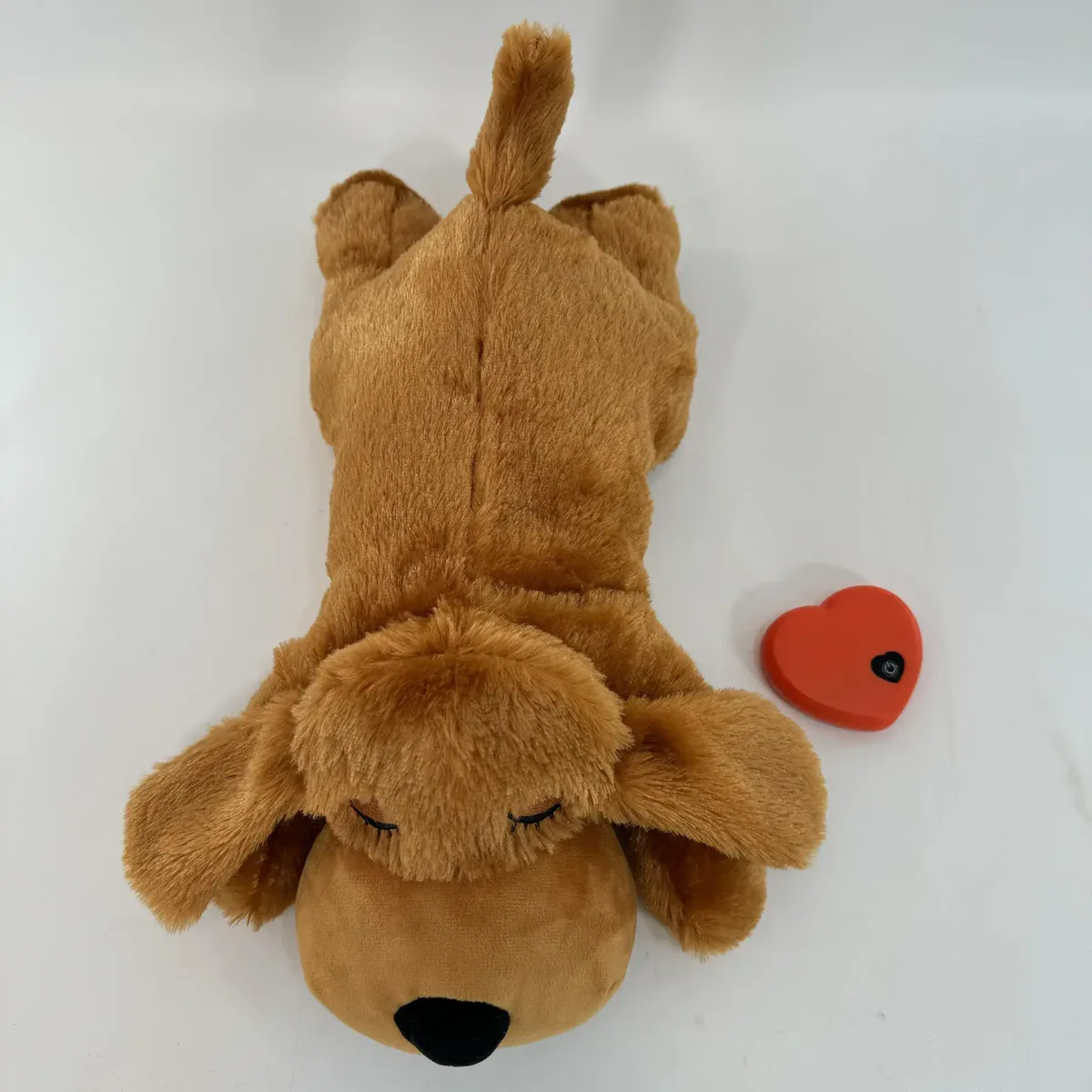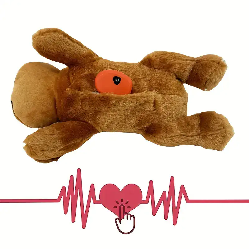 This heartbeat plush dog toy is designed to provide a gentle pulsing sensation for comforting and resting. The soft polyester exterior and stuffed construction create a cushioned feel for everyday handling. A compact, lightweight form makes it easy to carry, reposition, or store between uses. The enclosed design helps keep the internal element protected during normal play and downtime.
