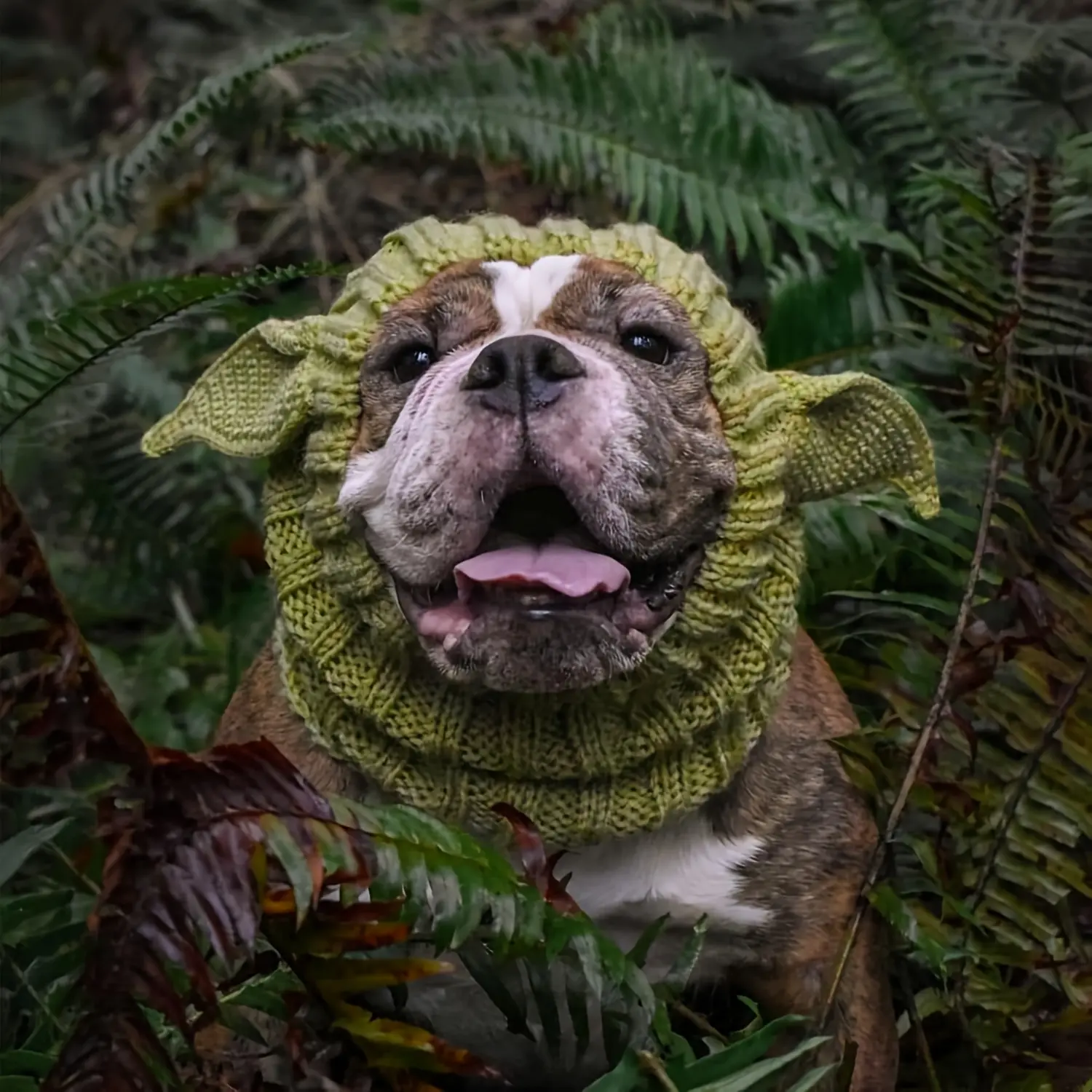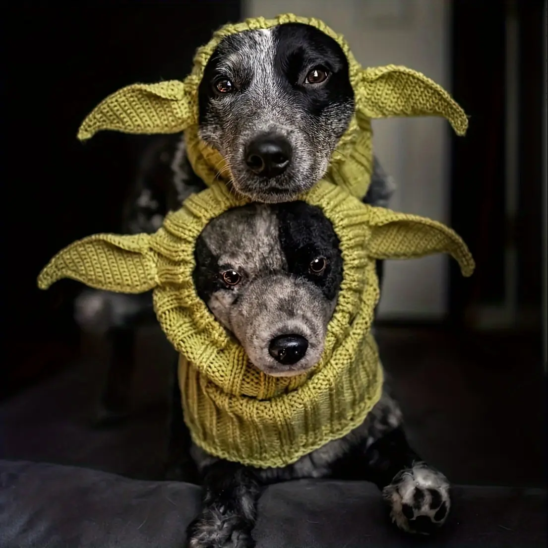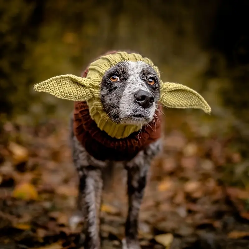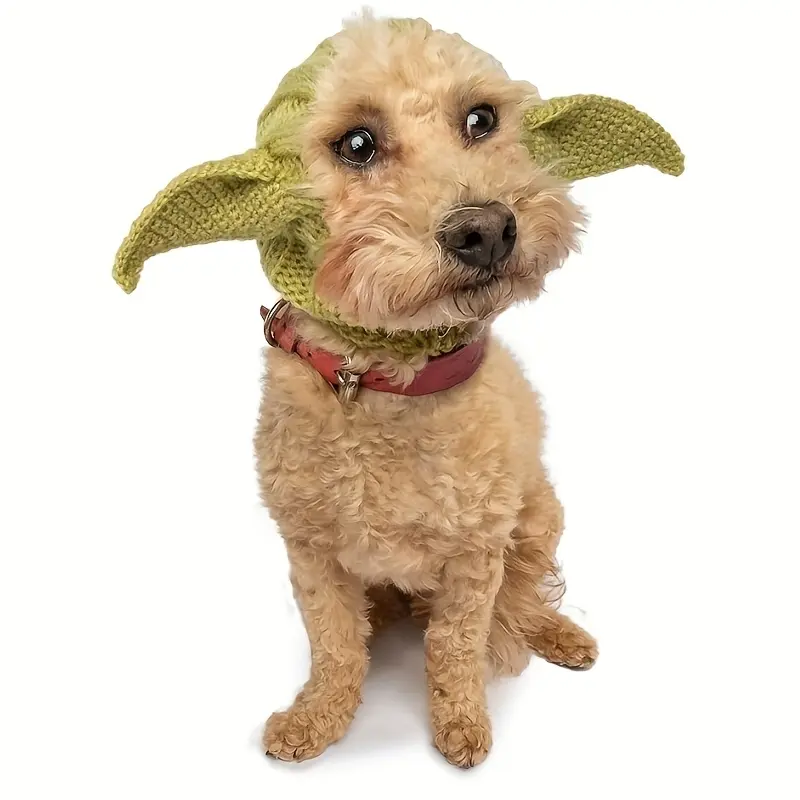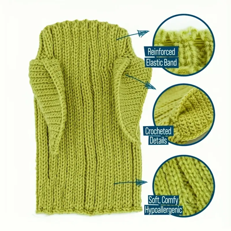 Knitted Pet Dog Hat for Wind Protection & Warmth, Green Elf Style
