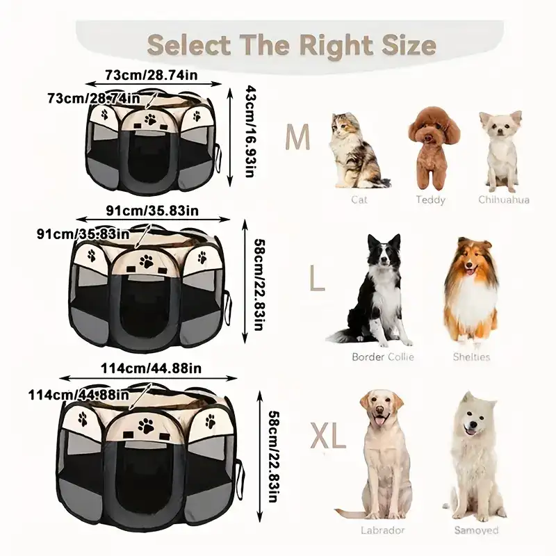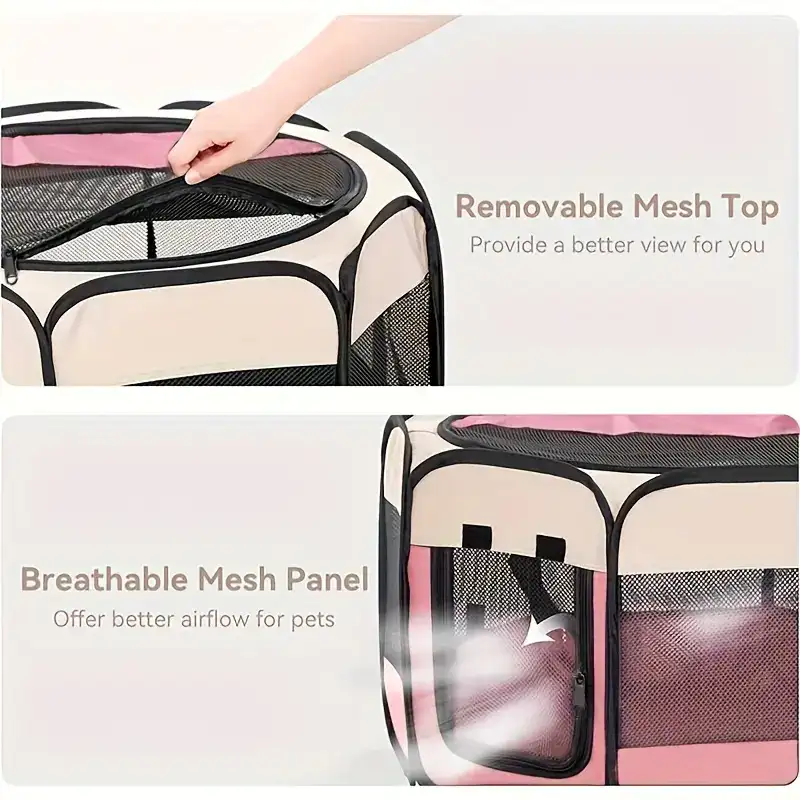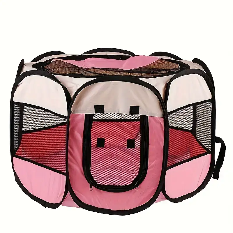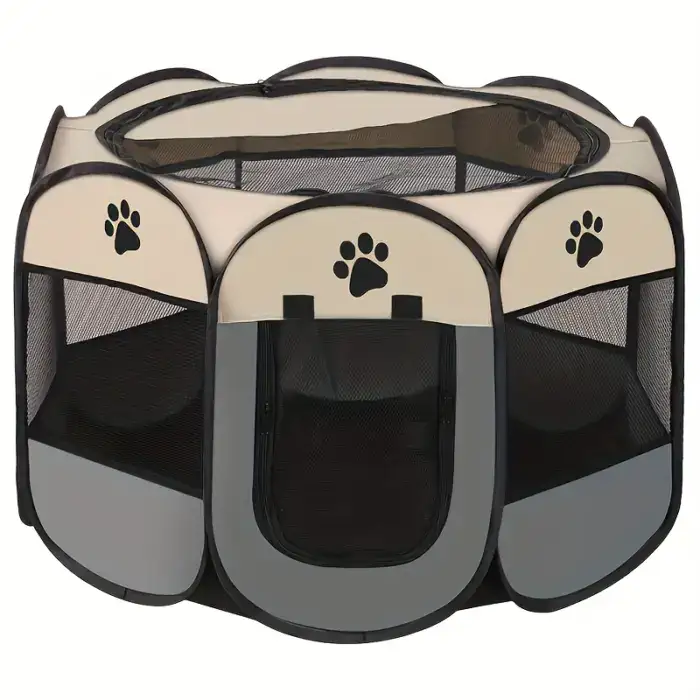This octagonal pet enclosure provides a defined space for pets to rest or stay contained indoors. The foldable frame design supports quick setup and compact storage when not in use. An enclosed layout helps create a separated area while maintaining visibility through the structure. Suitable for use with dogs or cats where a portable enclosure is needed.