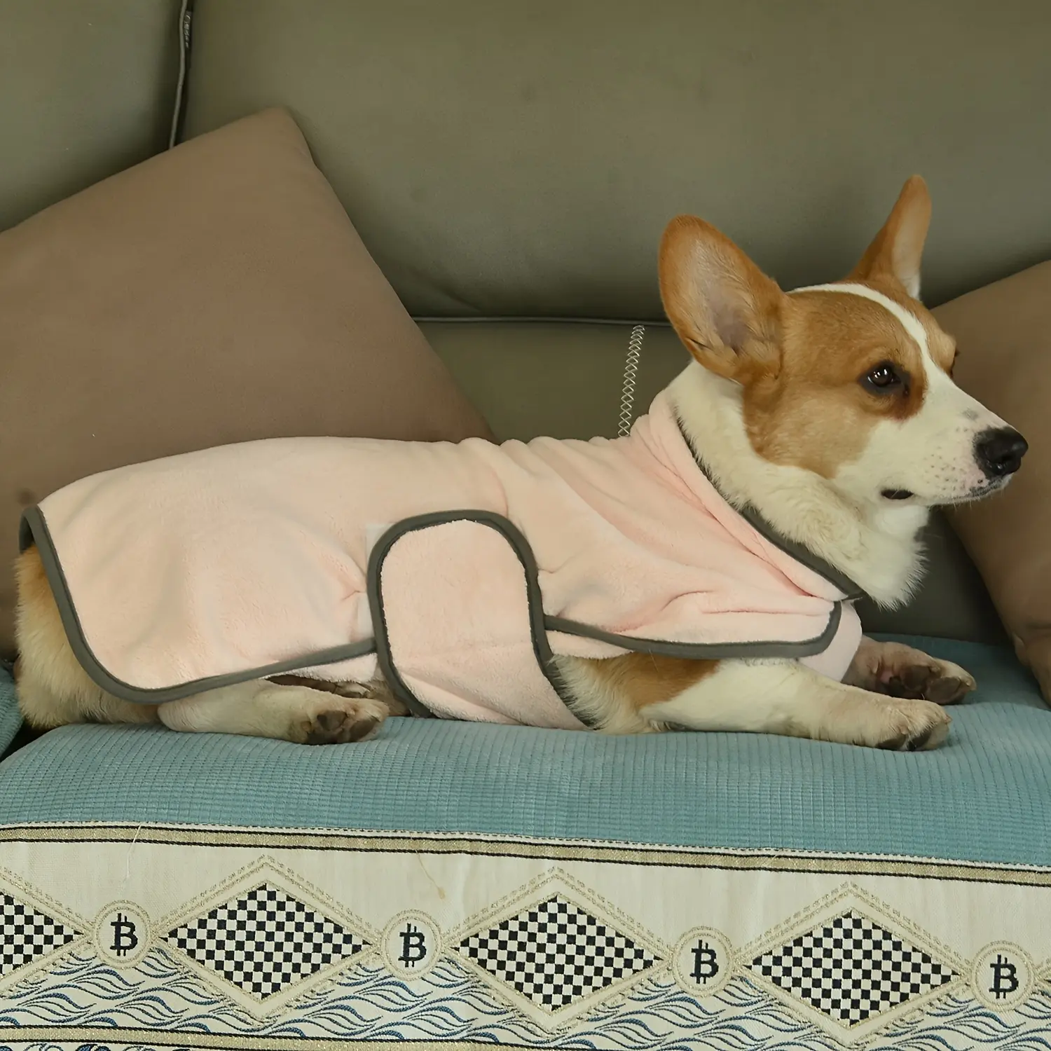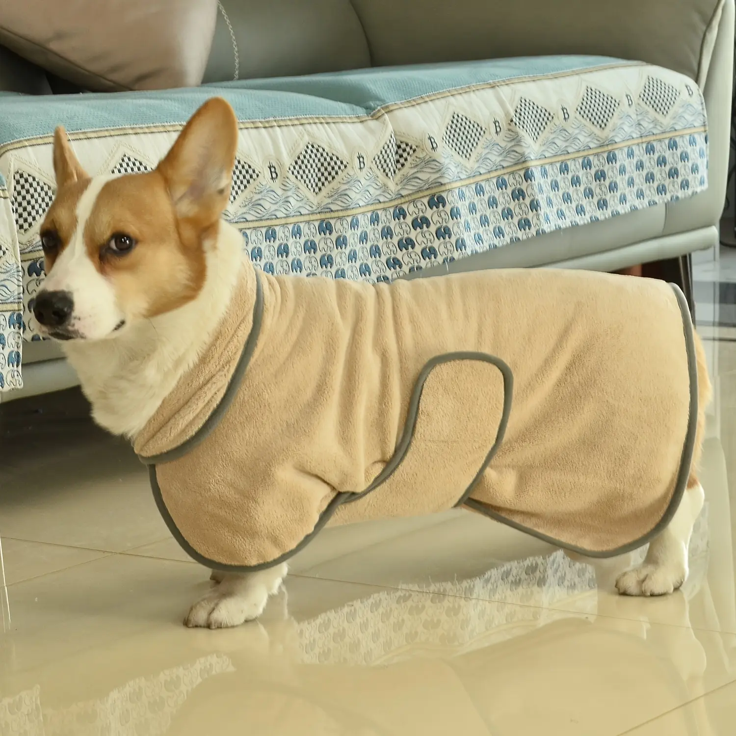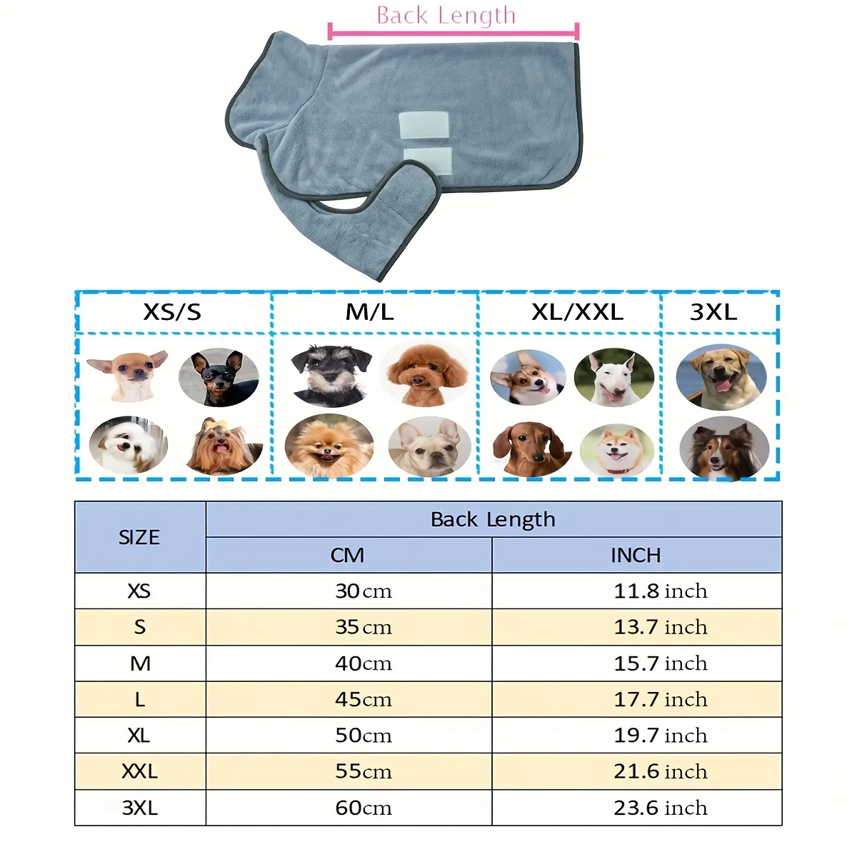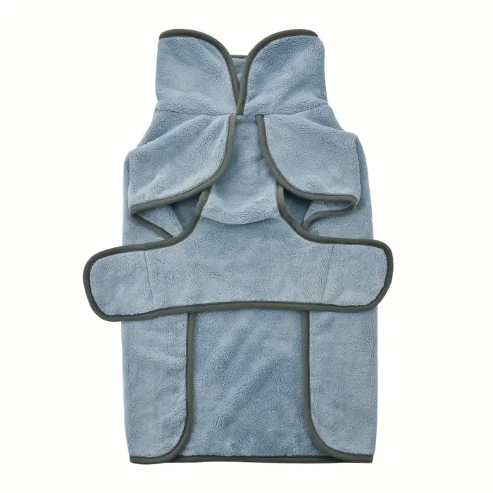 This dog bathrobe towel is designed to help dry your pet after baths and grooming. The wrap-style design helps keep the towel positioned while absorbing moisture from the coat. Soft fabric supports comfortable handling during drying. Suitable for routine use at home or after outdoor activities.