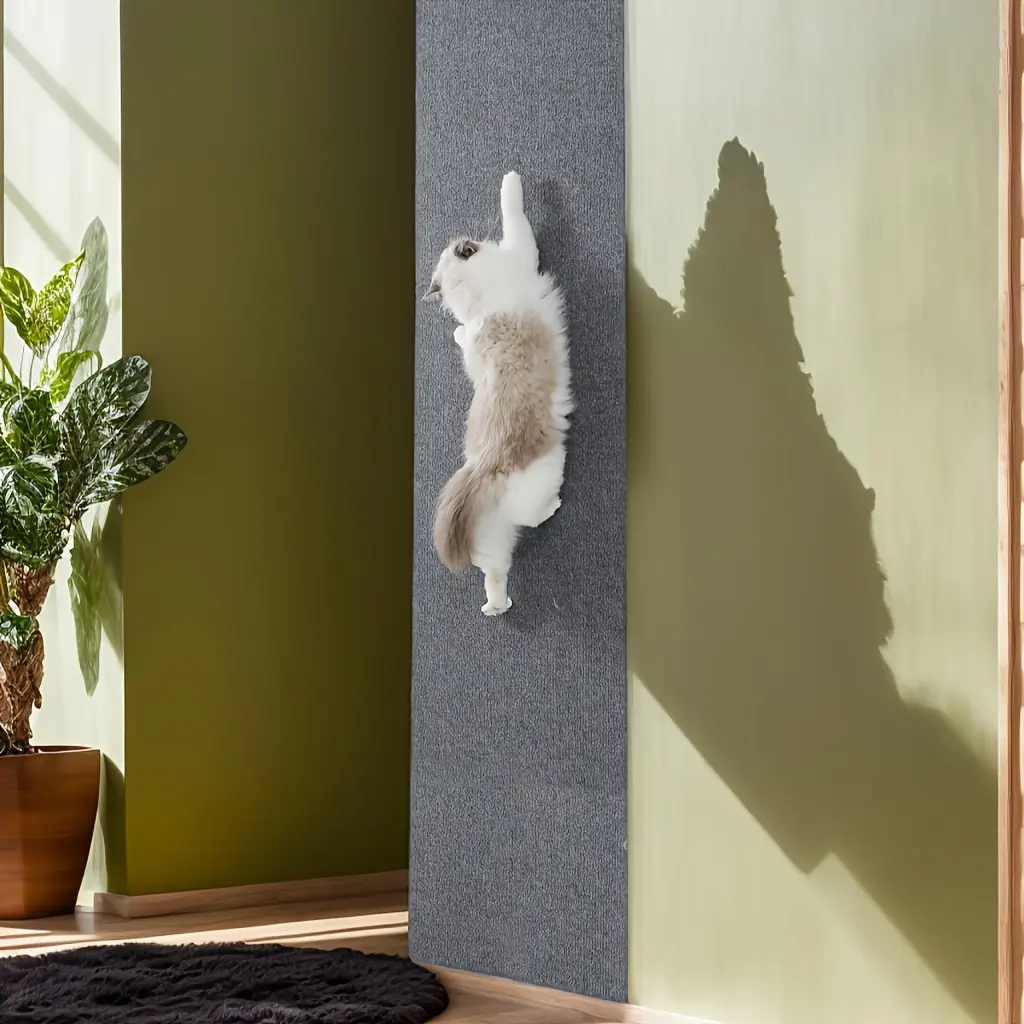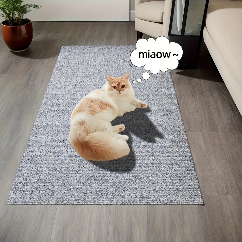 This self-adhesive cat scratching pad is designed to help protect surfaces from claw marks and wear. The textured surface provides a dedicated area for scratching while the adhesive backing helps keep the pad in place. It can be trimmed to fit different surface sizes and shapes as needed. The beige and brown color scheme is intended to blend with a range of indoor decor styles.