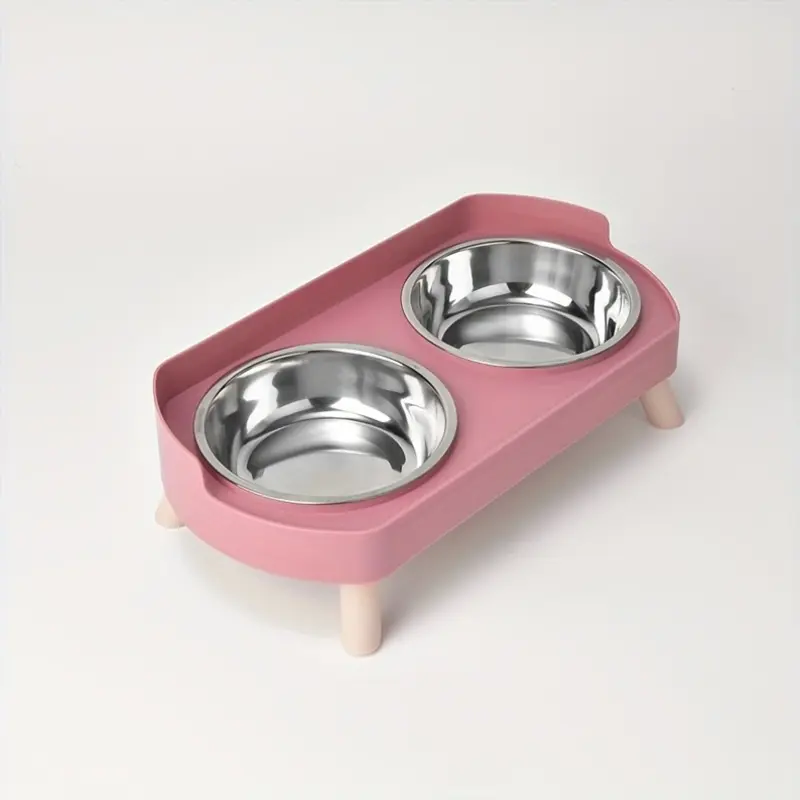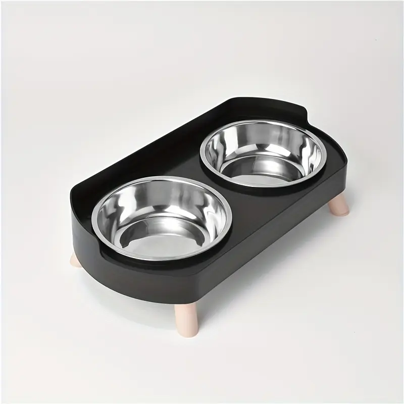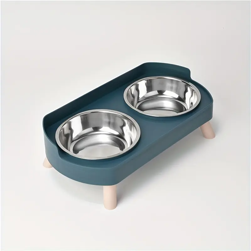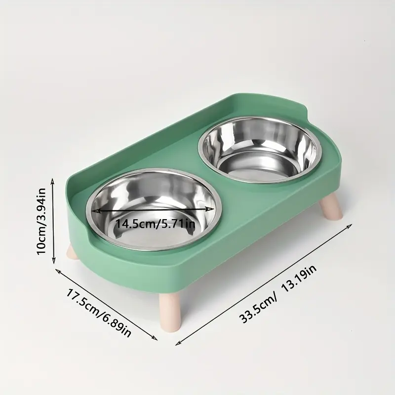 This elevated dual bowl feeder is designed to support feeding and water dispensing for cats and small dogs. It includes two removable stainless steel bowls paired with a durable plastic base for stable daily use. The raised layout helps keep the bowls positioned at a consistent height during use. Smooth surfaces are intended to make rinsing and wiping easier between refills.