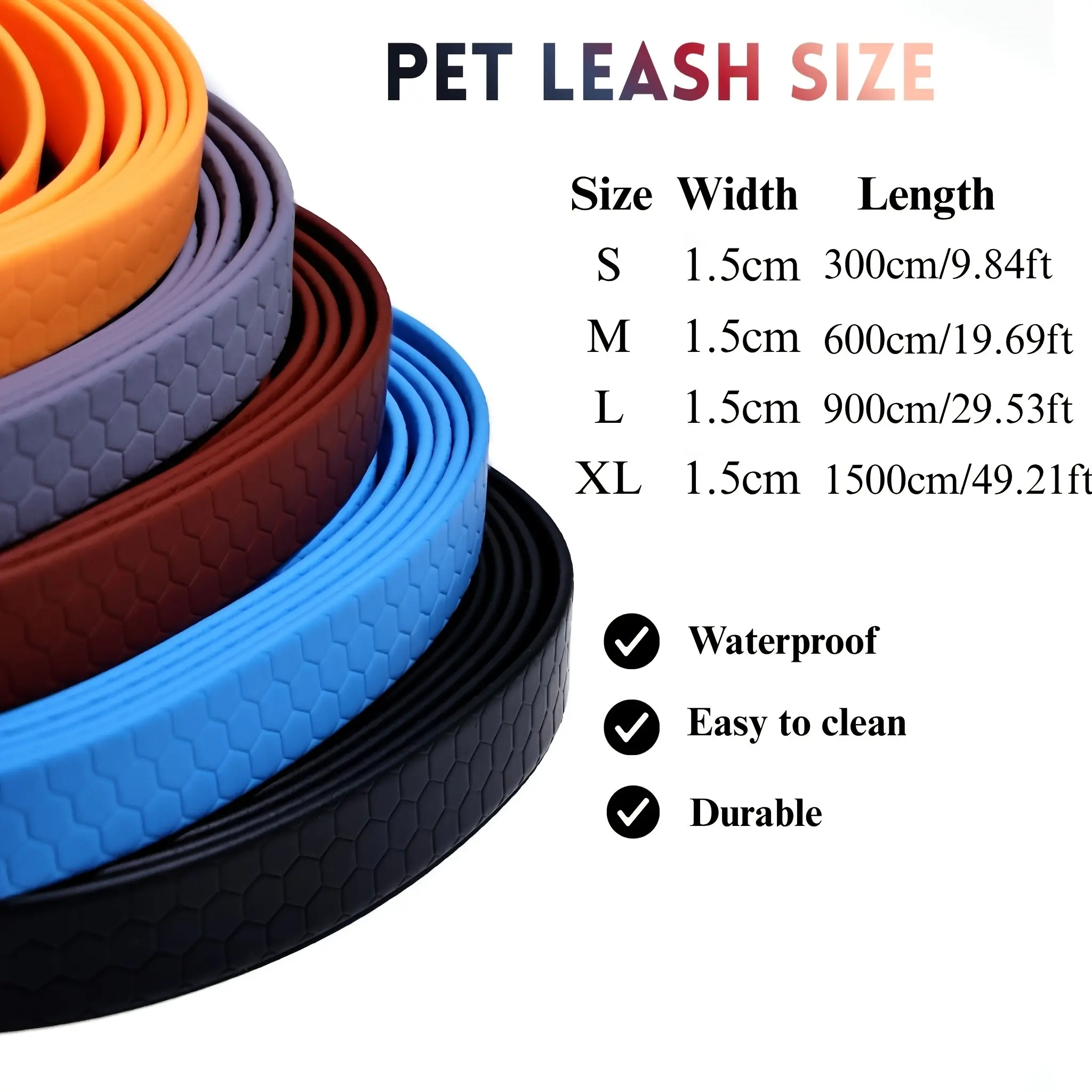 This dog leash is designed for training and everyday walking. The waterproof outer surface helps reduce water absorption during use. A long-lead design supports controlled distance handling while maintaining a secure connection. The durable construction is intended for regular use with small, medium, or large dogs.