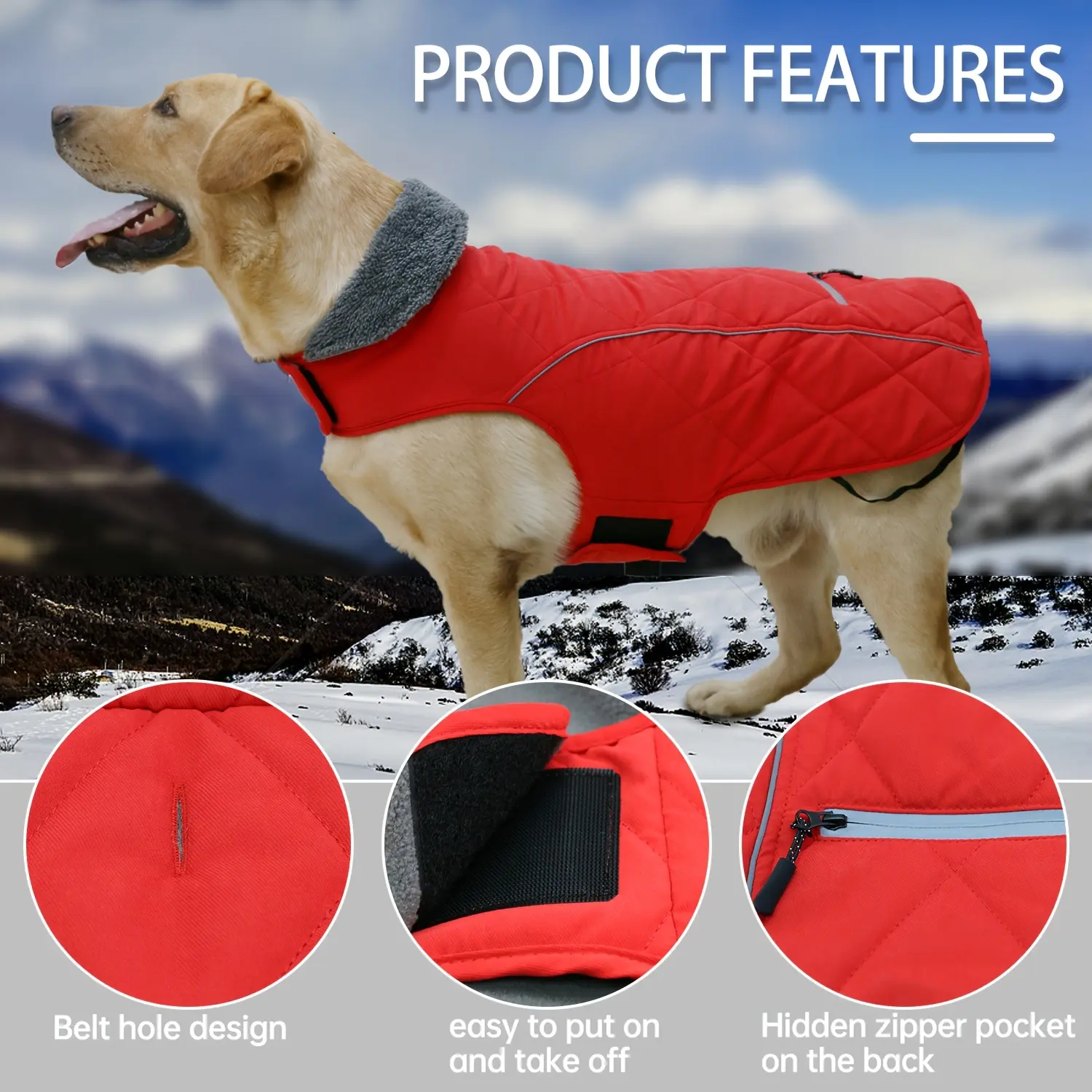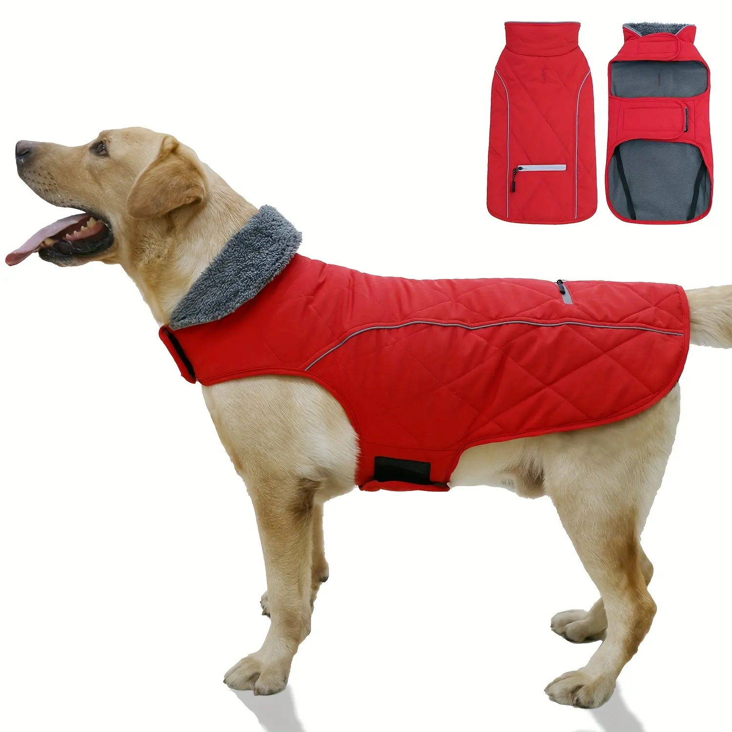 Winter Dog Coat for Cold Weather with Reflective Trim and Adjustable Fit